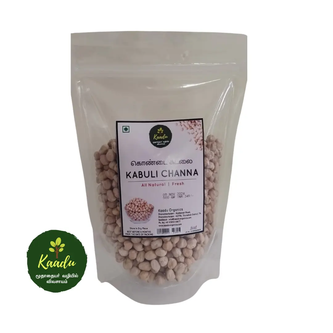 Kabuli channa, sometimes referred to as garbanzo beans or chickpeas, is a common legume in Indian cooking. Kabuli channa, which is round and white in color, is a little bigger and smoother than its Desi/Black channa.